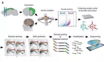 单细胞测序技术帮助科学家更深入的了解大脑神经细胞。2017年,Salk生物研究所领导的团队根据甲基化和调控特征,区分小鼠和人类大脑样本中的神经元亚型,并鉴定出人类额叶皮质中一组新的神经元。研究人员利用单细胞甲基化测序分析小鼠和人类额叶皮质样本中近6200个神经元,并根据甲基化和调控元件特征对已知的神经元亚型进行聚类。此外,他们还指出人类大脑中存在一种新的神经元亚型,称为“第6层兴奋性神经元”,它们有着独特的甲基化标记。